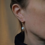 The Gold filled Huggies sit close around the ear. The chunkier gold filled earring in combination with the freshwater Pearl creates a lovely richness together and conveys an elegant style.