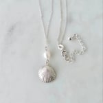 This necklace is inspired by the form and structure of shells and the beauty of a pearl within.